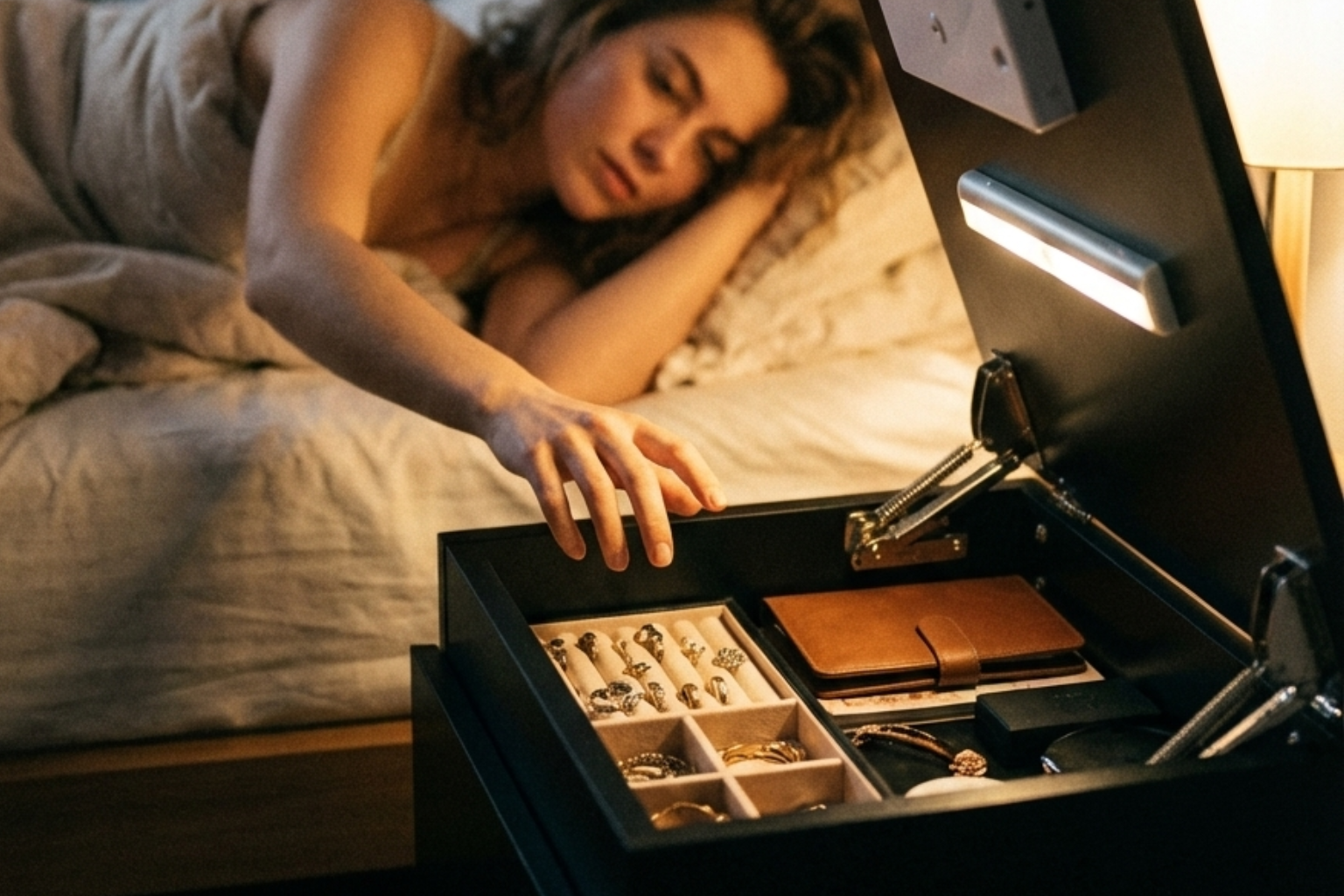 No. This is a custom-developed piece of furniture with a special locking mechanism, designed specifically for secure at-home storage of valuables and personal items.
