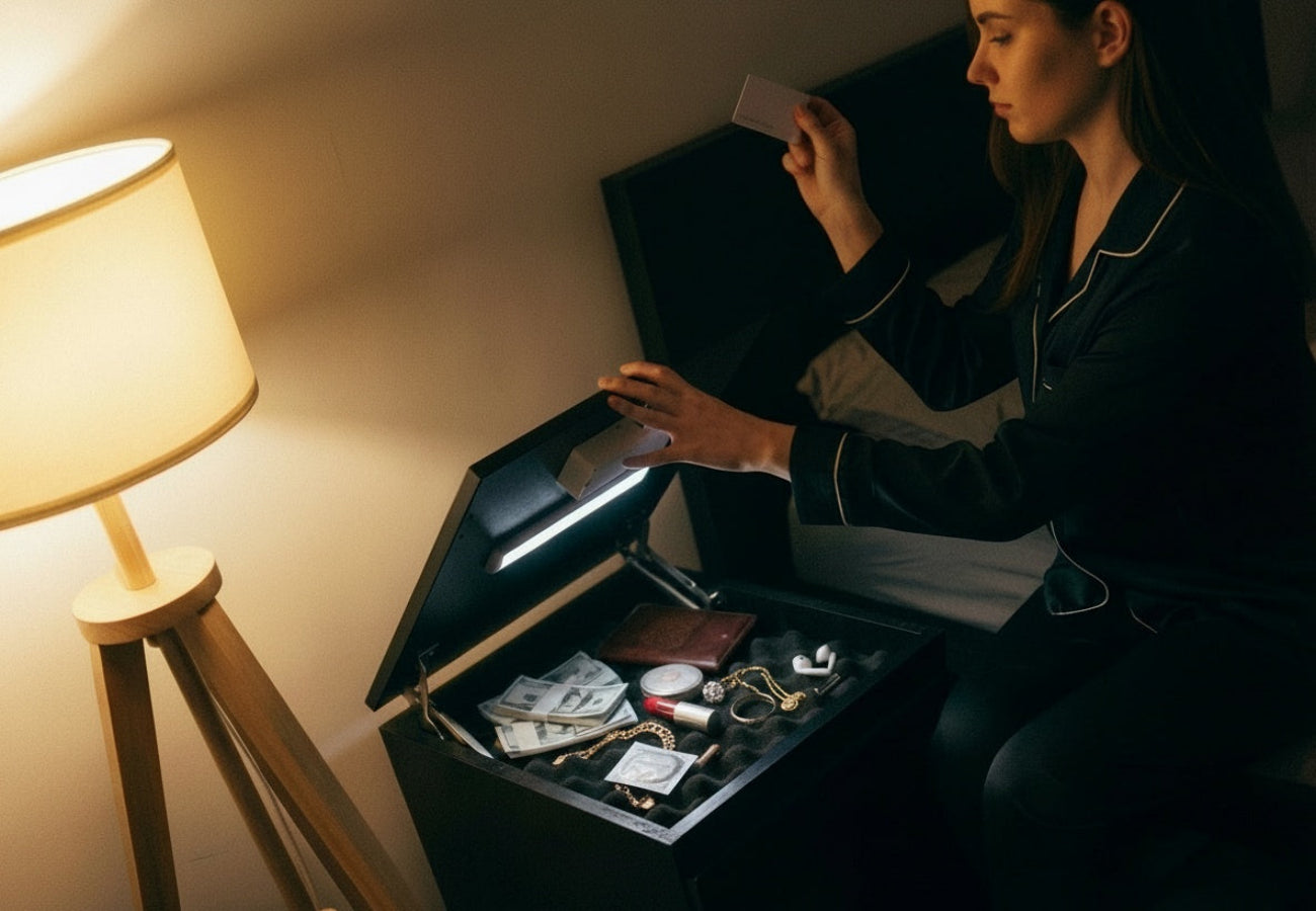 We created our furniture with hidden compartments to provide a simple and reliable solution for those who want to keep their personal items and valuables concealed—quickly, conveniently, and in style. We believe a home feels truly organized and calm when every valuable has its own secure place. That is why we developed our lockable nightstand: with RFID protection, a solid structure, and a concealed design, it helps ensure that what matters most to you is always kept safe.